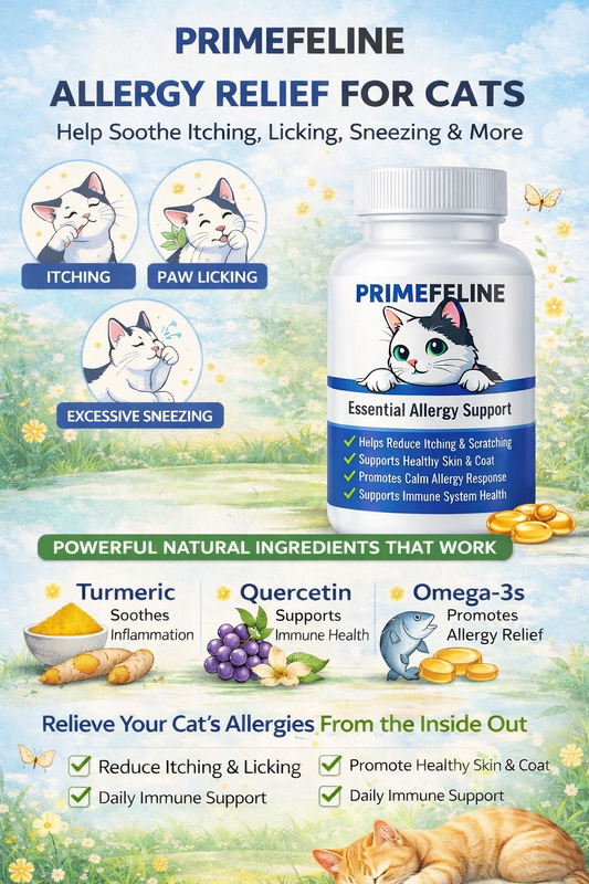 Stop the cycle of constant irritation with PrimeFeline™ Allergy supplement
